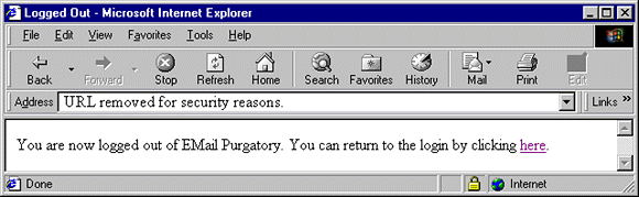 This alert is just telling you that you are leaving the secure NetNation host server used by EMail Purgatory in order to go who-knows-where. In this case, just say Yes. That’s it. Now you are an EMail Purgatory expert. Ok, maybe you’re not an expert yet but at least you can see how easy it is to find Bad Things before they sneak up and bite you on your derriere! |